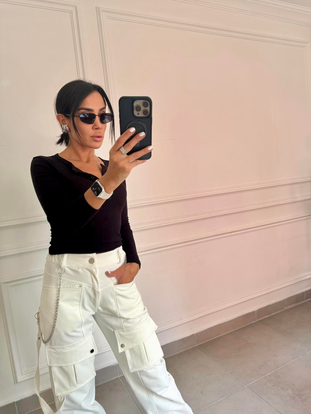 Jincir detayları ve cepleriyle pratiklik sunan bu pantolonu her mevsim gönül rahatlığıyla giyebilirsiniz.