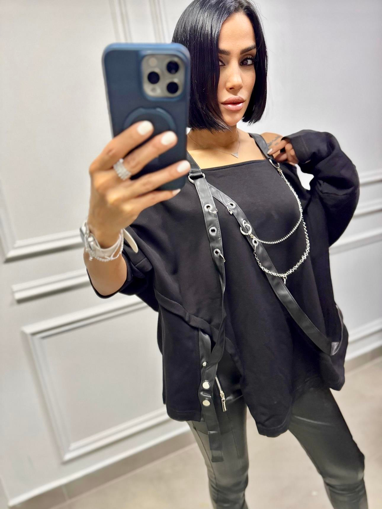 Deri Askı Kuşgölü Sweat (BWRE-0706Siyah-M5)