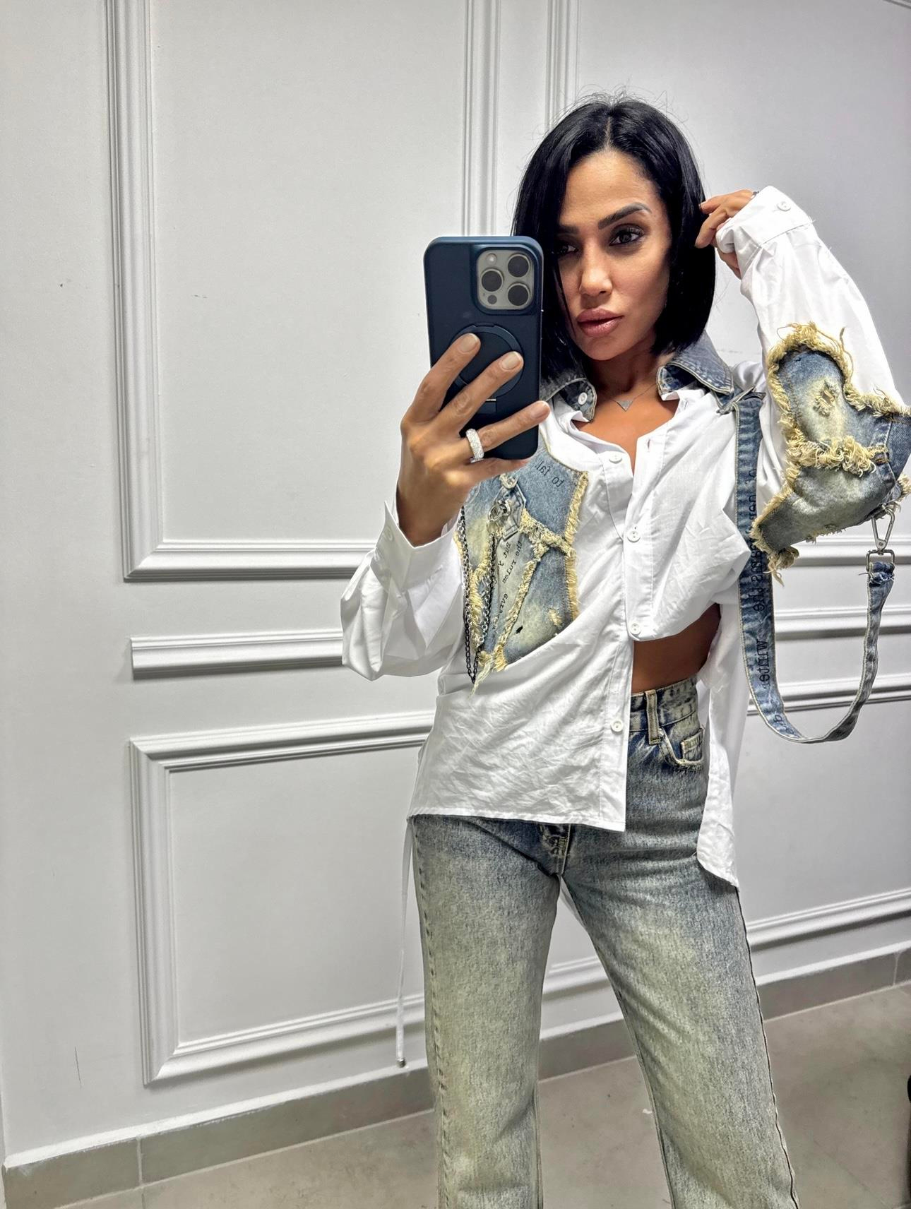 Şık ve modern görünümü ile dikkat çeken kot garnili gömlek. Yüksek kaliteli pamuk kumaştan üretilmiştir, gün boyu konfor sağla.
